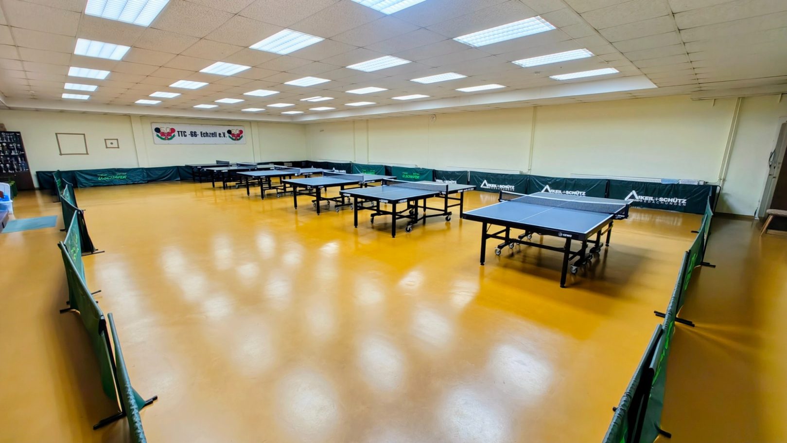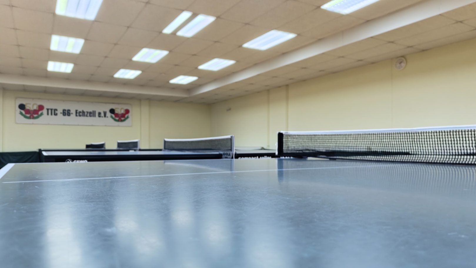Durch die Raumlage im UG der Horlofftalhalle gibt es keinerlei Faktoren, die beim Tischtennis spielen stören könnten, wie Tageslicht oder Lärm durch andere Hallennutzer.